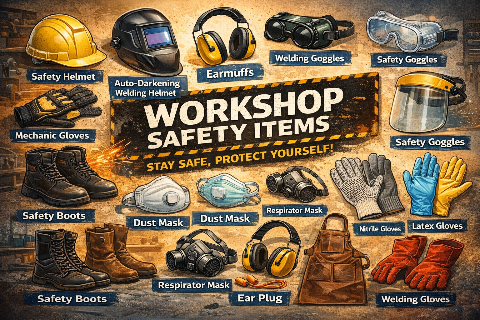 The main purpose of this article is to introduce you to the safety items that can be / should be used in a workshop.