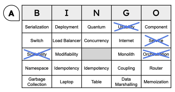 Throughout these morning lectures, I tried to keep the students actively listening rather than passively taking notes. One novel thing I did was incorporate a Bingo game to encourage active listening. Before the workshop, I prepared Bingo cards for each student – a 5x5 grid with 24 words (the center cell was left blank). Some of the words were relevant to the workshop content, some related to computer engineering generally, and a few were random decoy words with no relevance. The rules were simple: as I went through the slides and explained concepts, students would listen for those words and mark them on their Bingo sheets when they heard me say them.